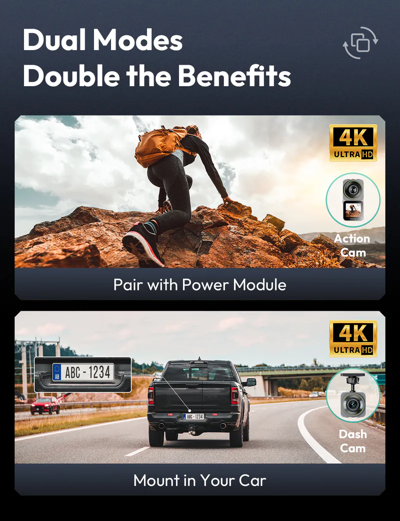 可組合為行車紀錄儀 或 運動相機 (IPX4)